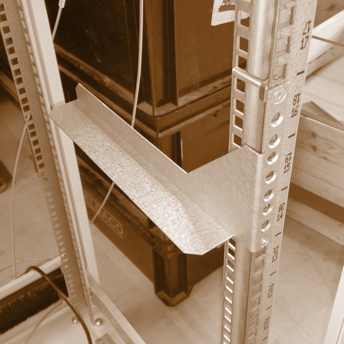 Mekanikk/hvileskinner for innmontert 19`` utstyr i rack. Praktisk for å unngå stor belastning på frontskruene